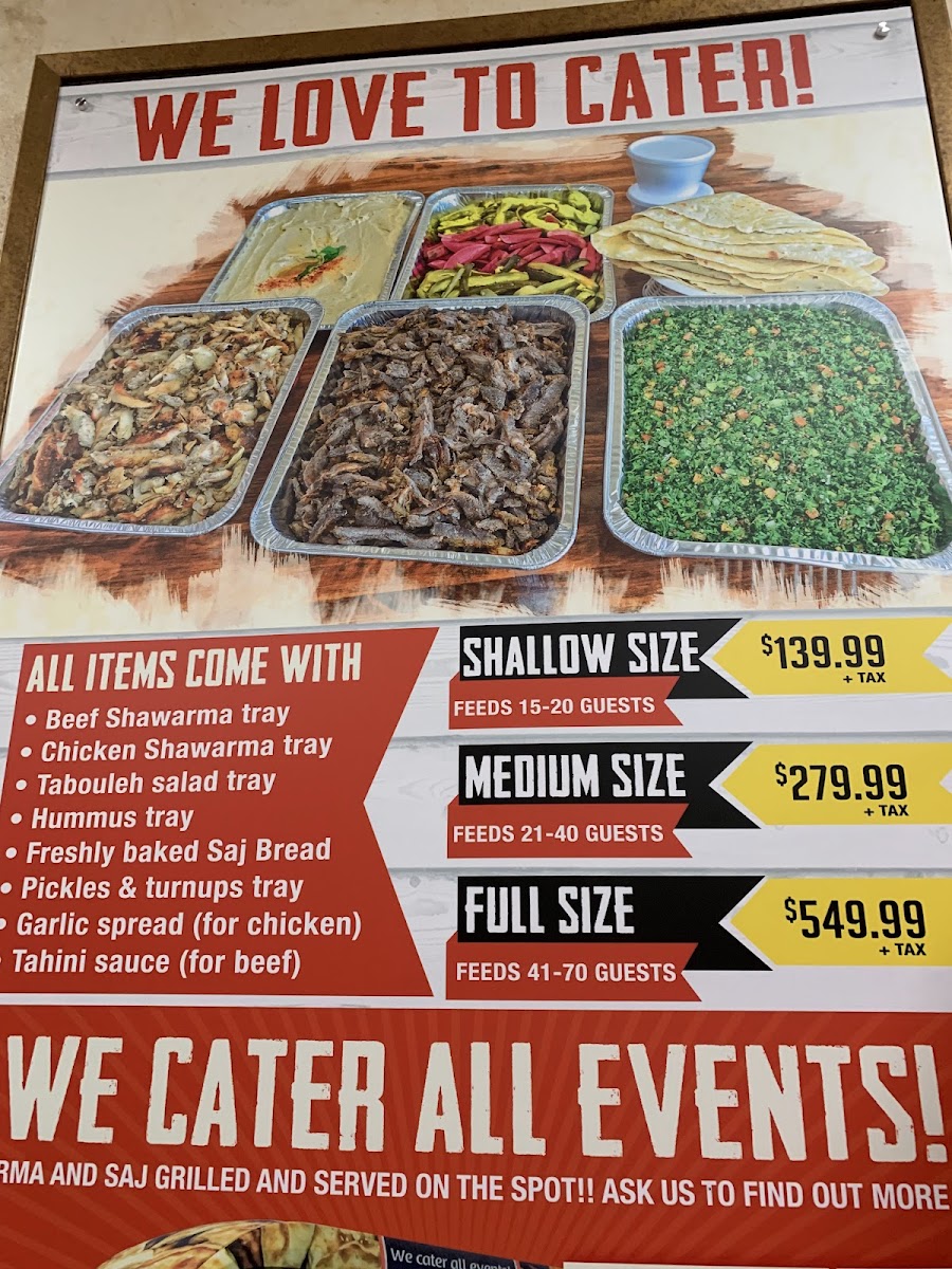 Lamb shawarma wrapped with lettuce, pickles, tomato, garlic and tzatziki sauce.
