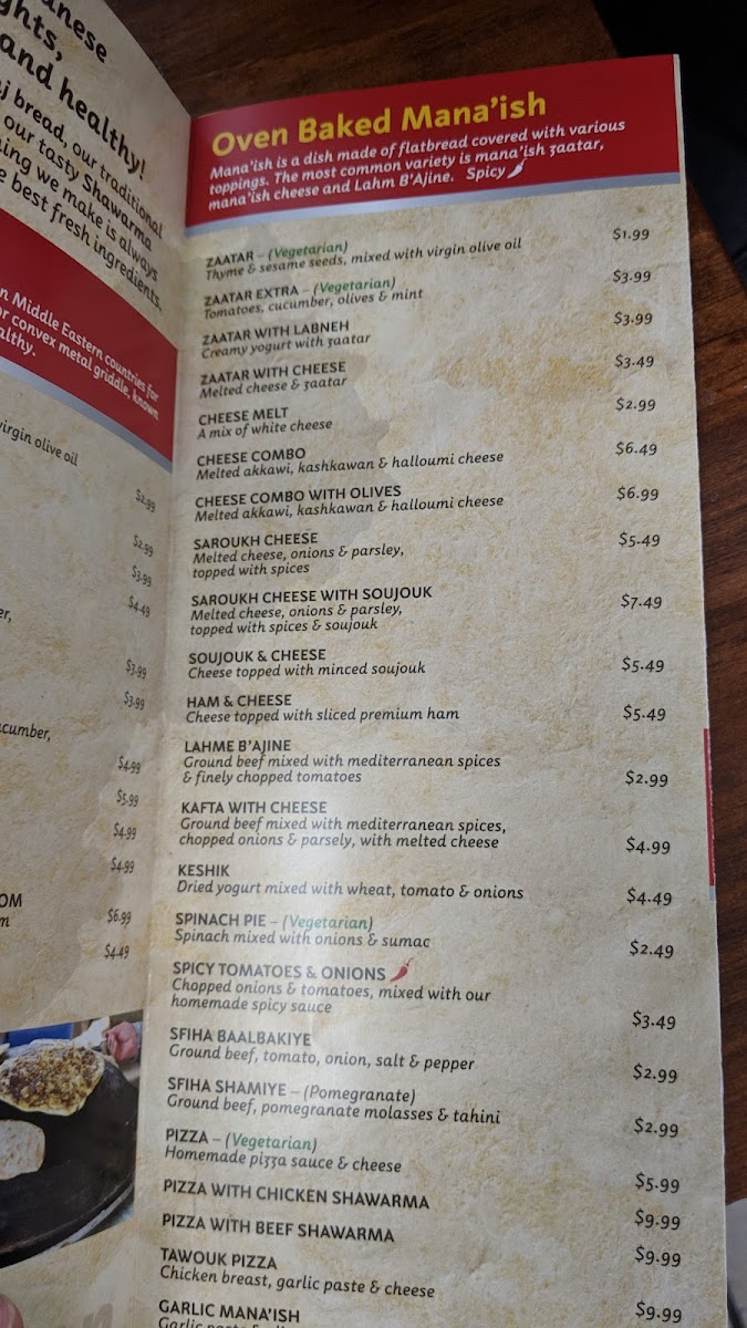 Zaatar and mix of white cheese baked to perfection on our saj bread